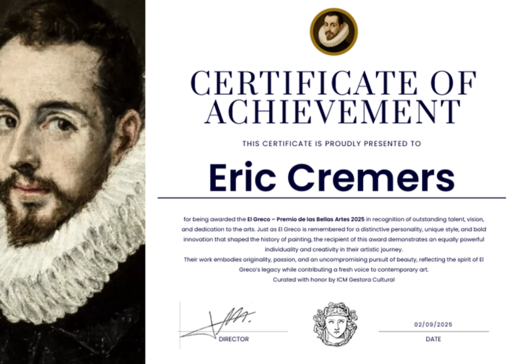 In August 2025 I was selected for the El Greco Fine Arts Award in recognition of the personality, creativity, and originality of my ' unique artistic style.'